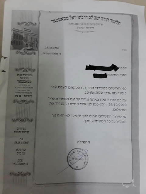 סאטמאר בקרית יואל זורקת את הילדים שההורים לא שילמו שכר לימוד